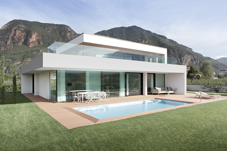 Il progetto M2 riguarda una casa clima a, situata a Bolzano e composta da due unità abitative disposte su due livelli. L‘appartamento al piano terra, più ampio, è completamente intonacato all‘esterno, mentre quello del livello superiore, più piccolo, è rivestito da pannelli. Le facciate nord ed est sono molto compatte e presentano solo le aperture essenziali; quelle a sud ed ovest, che si aprono sul giardino con piscina, sono caratterizzate da ampie vetrate continue a tutta altezza.