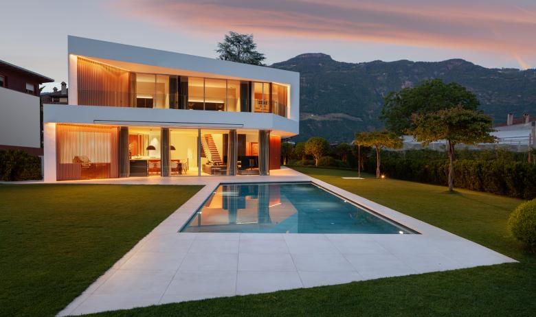 The single-family house G, which is built in climate house standard B has two floors above ground, as well as an underground floor with underground garage. In addition it has spacious terraces, a swimming pool and a large garden.