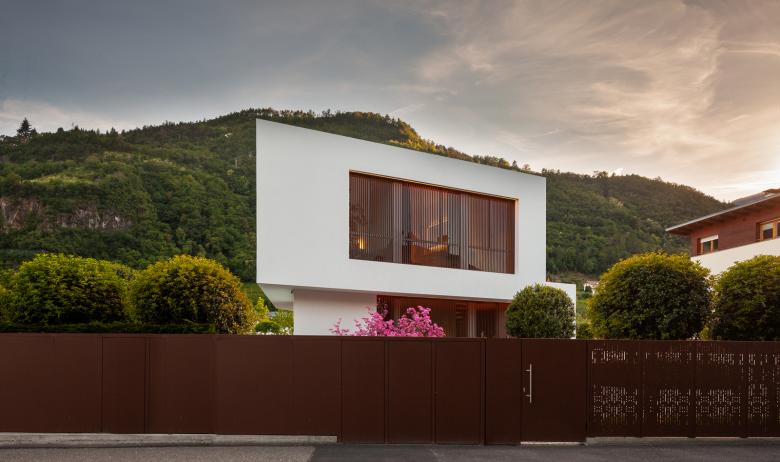 The building has a steel and concrete structure, plastered in white. The building opens tot he garden thanks to the generous glass facades and therefor uses the sunlight optimally. Direct in front oft he glass facades are stored wooden slats. The roof and a part of the terrace in the 1st floor is made as a green flat roof.