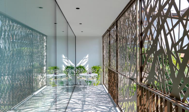 The aim of the planning was to create two independent entrances and two outdoor areas protected from each other.