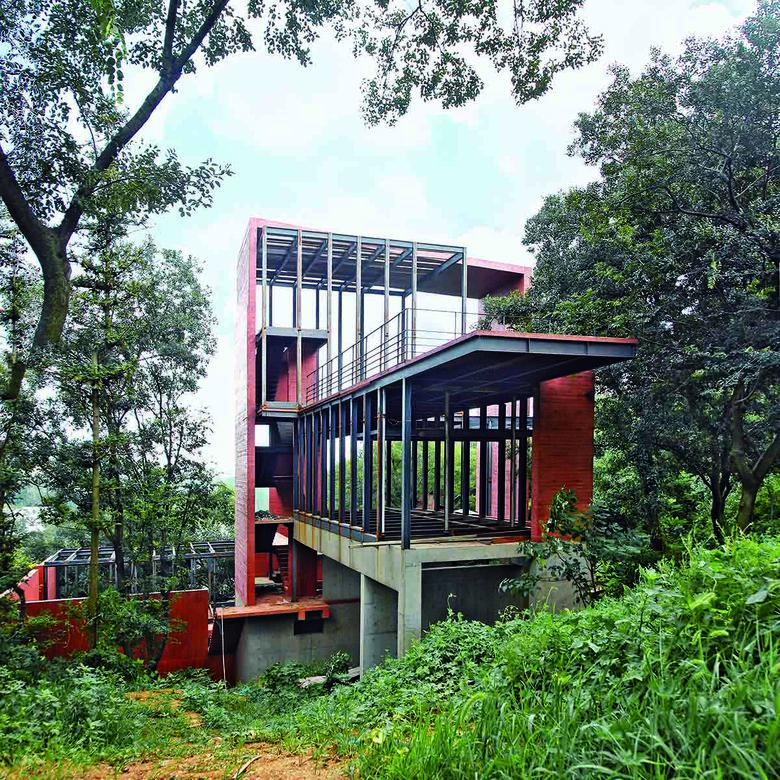 A narrow and long piece of paper rolls, folds up and is becoming a house.