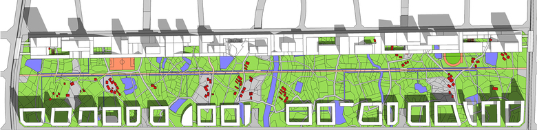 The design proposal aims to provide possibilities and methodologies of alternative planning and architectural design for the public supporting facilities and public green land of the new town. There were once ideas of the urban parlor and urban furniture. However, the urban parlor is a formal and static communication space, whereas the kitchen could bring alternative life experience to people. Kitchen represents a production space where the raw food is cooked and the creative idea is realized from scratch; it is also an informal communication space where working people interact, help each other and entertain themselves. Rem Koolhaas once mentioned “Culture of Congestion,” while we now further this idea to “Culture of Constant Congestion”. By means of the kitchen concept, a gigantic soft and hard infrastructure comes into being as a modern prototype that differ itself from the conventional and singular planning approach of the new town. This gigantic structure accommodates both the orthodox and unorthodox properties of temporization and subversion.