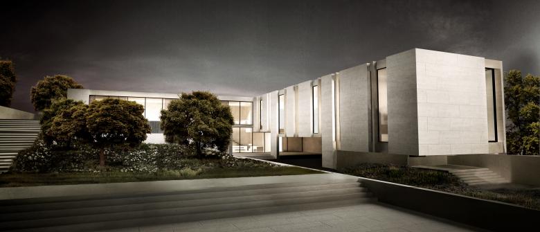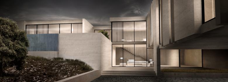 We have chosen limestone to cover the whole building, in an attempt to give it a monolithic, but luminous look. The detailing of the facade, like corner details, vertical and horizontal edges, etc., are all designed to show that it is just a stone facade, a light coat, and not a massive structural setup. The different scales of windows and loggias cuttings allow for several degrees and types of relations between the interior space and the street, or the near surroundings, giving a feeling of openness and translucency while maintaining enough privacy for inhabitants.This L- shaped house surrounds a nice courtyard with an infinity pool falling from above thus providing users with different outdoor seating areas and services in order for the client to maximize their use of the indoor and outdoor spaces.