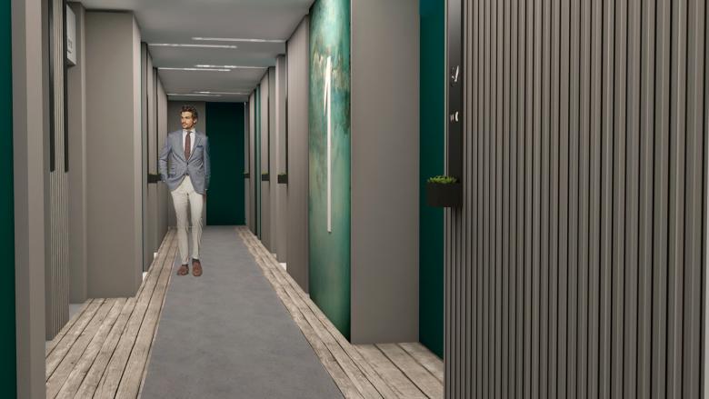 The stone giving off the sense of warmth seemed to be the most appropriate material for the image of the hotel in order to respect the surrounding residential buildings and to create playful vertical panels with different heights and openings that open up to different nice views. It has 12 standard rooms, 3 junior suites and 24 connected rooms, Business Conferences Halls, Lobby Area, Event Room and outdoor gardens connected a Restaurant on the ground floor where the hotel guests can have breakfast in the morning and communicating and sharing travel information in the evening as well as creating a nice venue for small parties and private occasions in Amman.