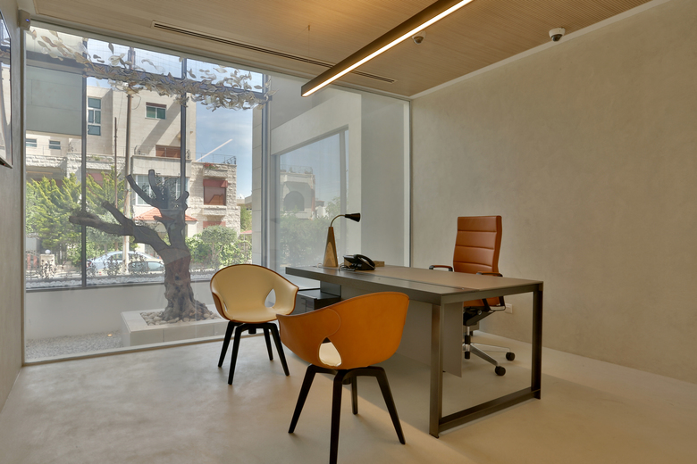 Situated in one of Amman’s more exclusive neighborhoods, the branch is designed for Capital Bank’s VIP clientele. The main design concept was to create a branch with a “Boutique” experience redesigning the traditional banking concept. The teller counters and waiting areas with the traditional queuing approach were replaced by individual office “boxes” catering to the private banking needs of the clients.