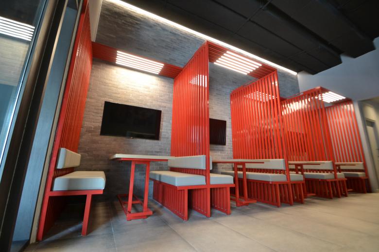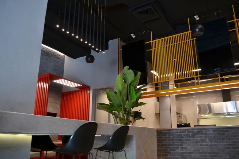 The Eaters restaurant interior design project employs material strategies typical to an industrial aesthetic, in the use of steel, concrete, and brick. The interior celebrates the mechanical and electrical systems through an exposed high ceiling. The objective was to represent the restaurant as an extension for the industrial kitchen, aiming to suggest the kitchen as a live theater for the eaters at eaters.