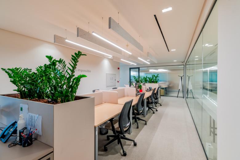 The space also reflects the evolving nature of the banking industry, emphasizing technology and digital solutions. This innovative approach to office design not only enhances employee productivity but also reinforces Invest Bank's position as a forward-thinking financial institution.