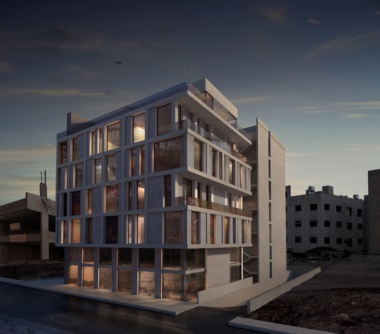 Situated on one of Amman’s main commercial spines and with the future plan of housing the main showroom of one of Jordan’s major porcelain/ceramic suppliers, Maraqa Commercial Building had to stand out in an established commercial district. Working within the regulation constraints as well as the client’s area requirements dictated that the design layout must be efficient to maximize the rentable retail and office spaces, yet dynamic and flexible enough to allow for a variety of future occupant types.