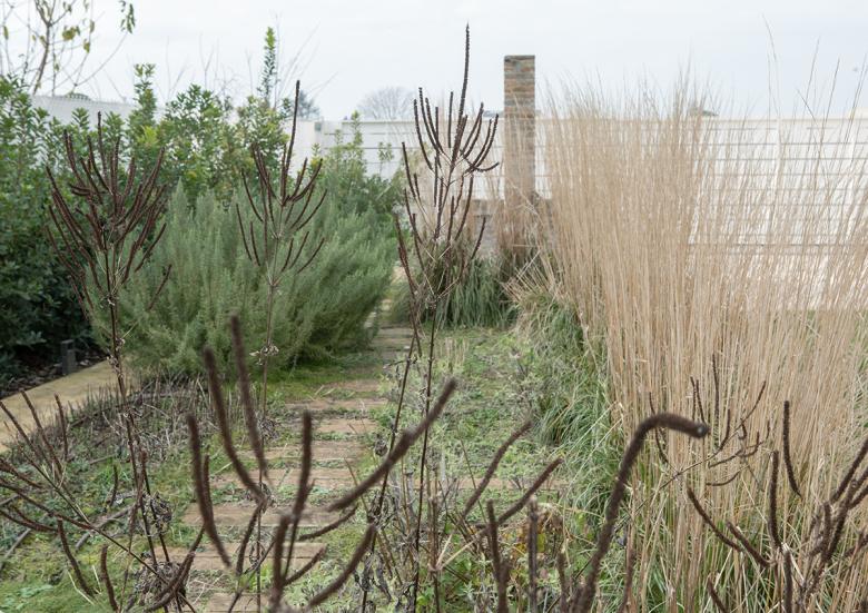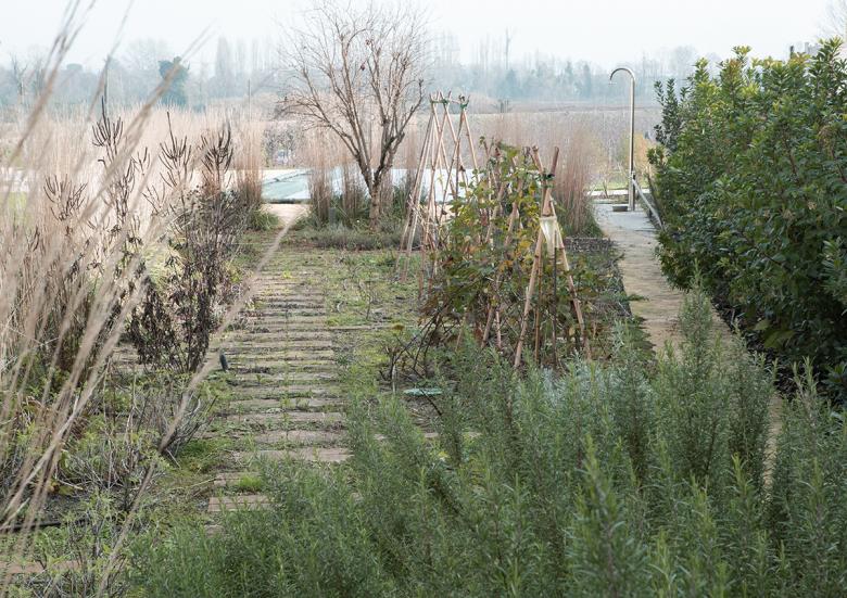 L’orto-giardino presenta una struttura simile a quella dei tradizionali orti e giardini dei semplici. Il progetto ha definito le specie nei settori di cornice, mentre la parte centrale, propriamente ad orto, viene realizzata e coltivata direttamente dai proprietari, secondo una filosofia progettuale che intende da un lato conferire chiara caratterizzazione compositiva all’insieme e dall’altro lasciare spazio alla personalizzazione e flessibilità d’uso.