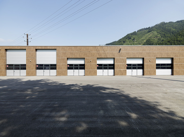Der Bauhof bietet verschiedensten für den Betrieb und der Wartung des Kraftwerks benötigten Fahrzeugen, Werkstätten und Materialien Platz.