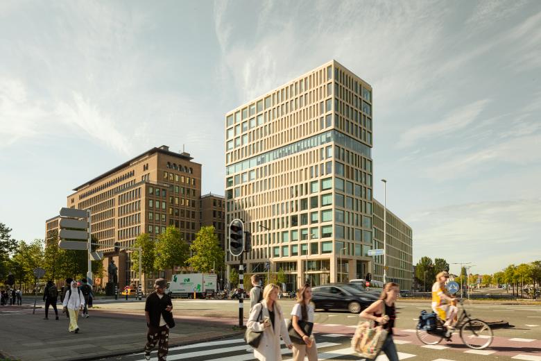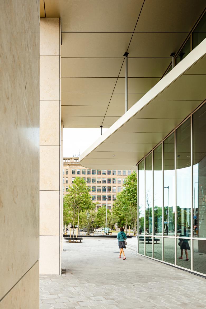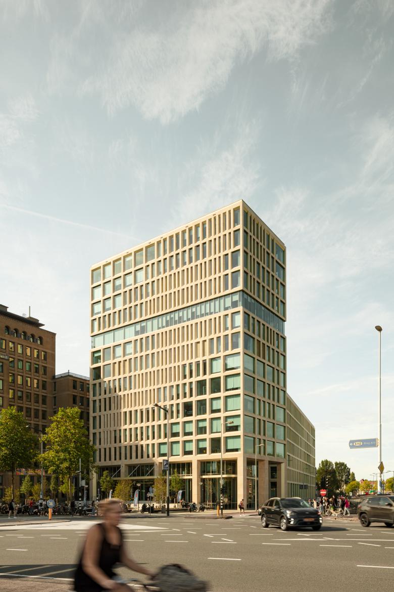 Education, research, professional practice, and the local area all converge in Jakoba Mulderhuis. We chose a rhythmic play of the façade imbued with subtle psychology. Its pattern runs upwards from left to right and is visible from all angles. The Jura limestone connects to the color tone of the adjacent Theo Thijssenhuis, ensuring harmony with the surroundings and reinforcing the monumental, future-proof character.