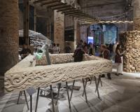 On the first floor, the bedroom is assigned the function of pivot for the surrounding bathroom and laundry room in the existing rear extension, dressing and fitness in the front part fo the building. The spaces are differentiated, physically interconnected and at times even visually. For example, a hint of the terrace is revealed from the landing of the stairwell, or for instance the view from the bedroom towards the dressing and shower, which can be closed off with a curtain. The soft beige parquet in wide strips is combined with a continuous terrazzo, with a texture that is repeated in the terrazzo tile on the outside terrace.