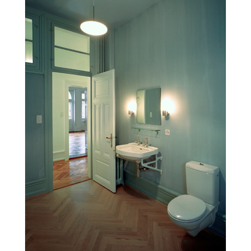 Ein erfolgreicher Jungunternehmer wünschte sich repräsentative Büro- und Gesellschaftsräume, kombiniert mit einem privaten Wohnbereich in urbanem Umfeld. In der grossbürgerlichen Wohnung aus dem Jahre 1892 wurden seit einem einschneidenden Umbau in den 50er Jahren keine nennenswerten Unterhaltsarbeiten mehr vorgenommen. Der jetzige Umbau wurde in Zusammenarbeit mit der Kantonalen Denkmalpflege durchgeführt. Das Erneuerungskonzept sieht einen öffentlichen Bereich mit fünf Räumen vor, deren Nutzung dem jeweiligen Anlass angepasst werden kann, und einen, drei Zimmer umfassenden Wohnbereich. Diese Aufteilung stimmt mit der ursprünglichen Raumstruktur überein, die eine vordere und eine hintere Zimmer-Enfilade aufweist. Neu wurde durch das Zusammenlegen von ehemaligem Bad, WC und Vorraum ein grosszügiges Badezimmer für den privaten Gebrauch geschaffen. Das Weisse Schloss war Finalist beim Architekturpreis «Der Beste Umbau» 2006.