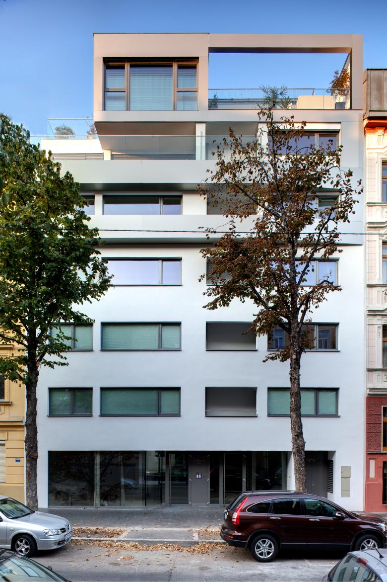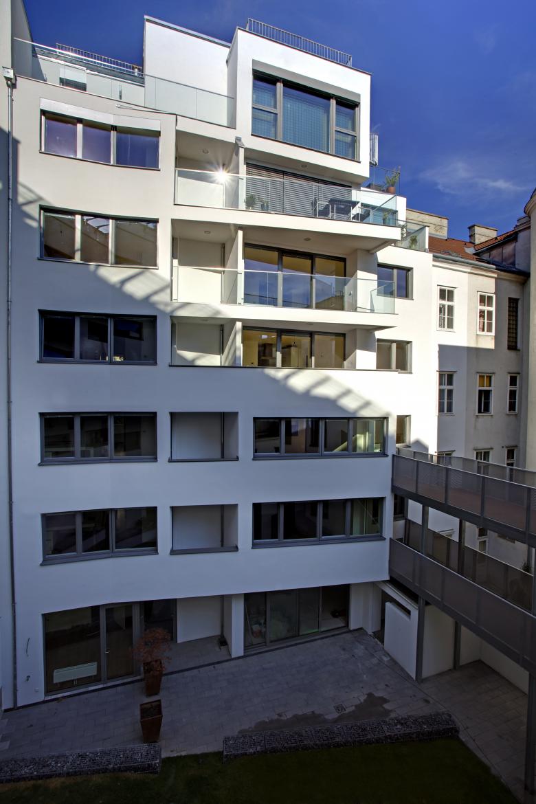Als Direktauftrag eines privaten Bauherrn wurde dieses Niedrig-Energie-Wohnbauprojekt mit zehn frei finanzierten Eigentumswohnungen sowie je einem Büro- und Geschäftslokal realisiert.