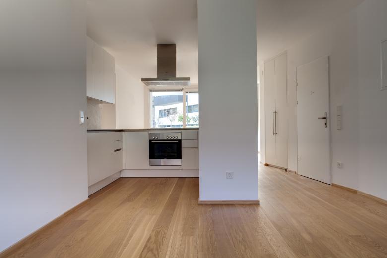 Alle Wohnungen haben durchgesteckte Grundrisse, sodass sie von zwei Seiten Tageslicht erhalten und Querlüftung möglich ist. Jede Wohnung verfügt über mindestens eine eigene Freifläche als Garten, Loggia oder Dachterrasse. Die Wohnungsgröße reicht von 45 bis 155 m², die Freiflächen haben zwischen 15 und 90 m². Für ausreichend Parkplätze sorgt die Tiefgarage.