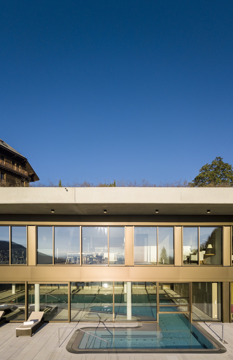 RDR architects were mandated to transform and extend the premises to house a new type of establishment, a modern day version of the original mountain wellness centre, combining the amenities of a 5 star hotel with the clinical and spa facilities of a world class rehabilitation clinic.