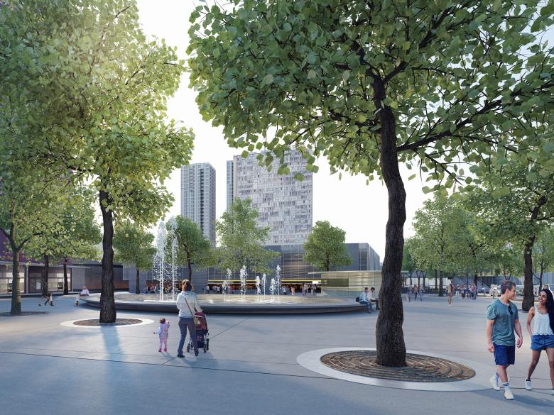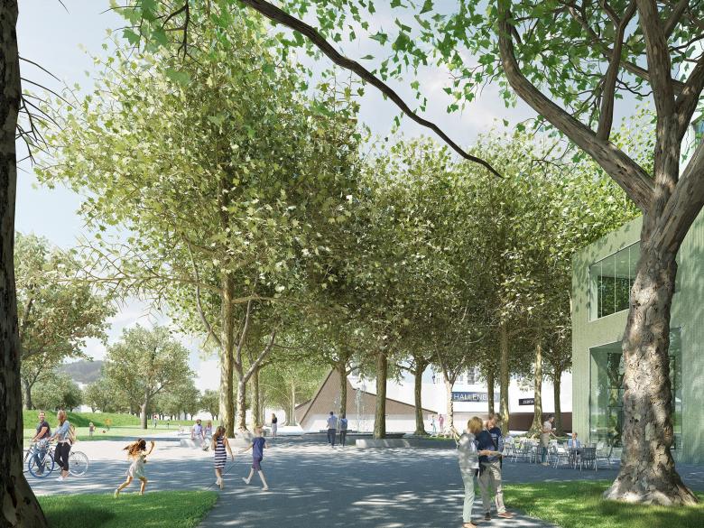 Ein ganzjährig nutzbares und urbanes Lifestylezentrum mit qualitativen Aussenräumen und erweitertem Angebot soll zukünftig entstehen. Das Planungsgebiet gliedert sich in zwei Hälften: die eine Seite bildet den Stadtpark als neuen, wichtigen öffentlichen Raum für ganz Spreitenbach. Die andere Hälfte ist die Stadtebene mit dem Shoppi, den verschiedenen Hochbauten und den dazugehörigen Freiräumen und Infrastrukturen. Beide Sphären stehen in direkter Beziehung zueinander und sind durch ein starkes, raumwirksames Element miteinander verknüpft: der Esplanade.