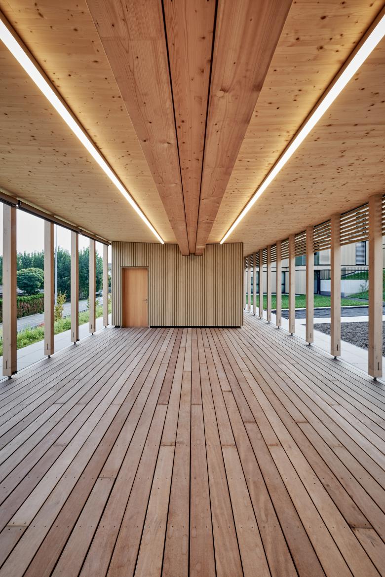 Im Zentrum steht ein hölzerner Pavillon. Dieser steht allen Bewohnern für Feste, Grillabende und Kindergeburtstage zur Verfügung.