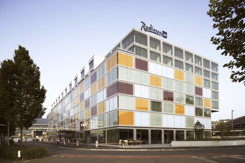 Das multifunktionale Lakefront Center erhebt sich zwischen Bahnhof, KKL, Werftanlage und Dienstleistungszone in einer heterogenen wie städtebaulich spannenden Umgebung Luzerns wo früher die Güterschuppen der Bahn standen. Auf die abwechslungsreiche Nachbarschaft antwortet die in zwei Gebäudewinkel geteilte, städtische Großform mit einem Nutzungsmix. Das Viersterne-Stadthotel Radisson Blu, diverse Restaurationen, gut 5000m2 Bürofläche, sowie 24 exklusiven Maisonettewohnungen umfasst das Lakefront Center. Im Kopfbereich, gegen den See ausgerichtet, befinden sich der öffentliche Hotelbereich mit Lobby, Gastronomie und Konferenz. Verschiedene Hotelzimmer und Suiten reihen sich je nach Lage und Aussicht entlang eines Mittelkorridors in unterschiedlichen Breiten und Tiefen. Ein U-förmiger Innenhof, der sich zum Pilatus hin öffnet, sowie unterschiedliche Raumhöhen ergeben ein differenziertes Schnittbild mit einem um ein Geschoss reduzierten Bürotrakt. Mit einzigartiger Aussicht über die Stadt und die Berge, reihen sich im 6. Ober- und im Attikageschoss die Wohnungen wie ein Kranz um das Gebäude.