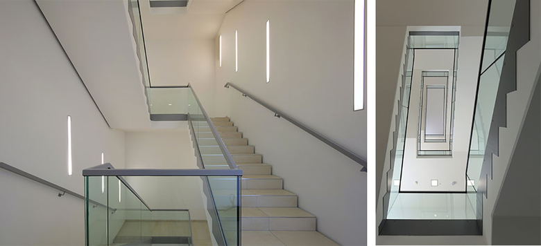 Der Hauptzugang erfolgt im Osten aus der Richtung des DLR Standortes Braunschweig, das Gebäude erhält hier durch seine Aufweitung, die durch die Anordnung von großen Besprechungs- und Seminarräumen definiert wird, auch ein repräsentatives Gesicht.