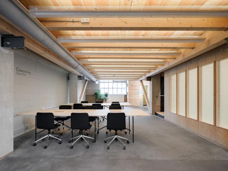 The industrial character of the building, a former warehouse of the Kindl brewery, has been consciously preserved by the architectural team. There is a diverse mixture of spaces, from open coworking, private office spaces, meeting rooms, lounges and a café, enabling modern and flexible working. Workshop rooms and maker labs expand the possibilities for creative development and collaboration. The lighting design concept not only supports these functions and values but also emphasises them.