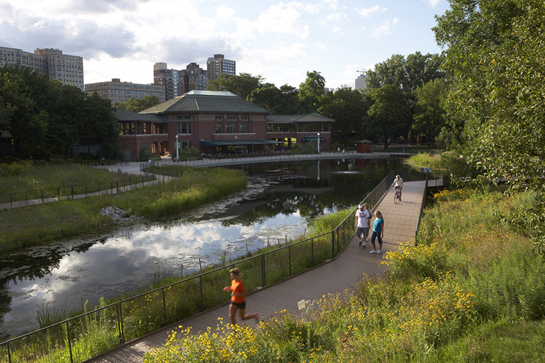 The project transforms a picturesque urban pond from the 19th century into an ecological habitat buzzing with life. With the design’s improvements to water quality, hydrology, landscape, accessibility, and shelter, the site is able to function as an outdoor classroom in which the co-existence of natural and urban surroundings is demonstrated.