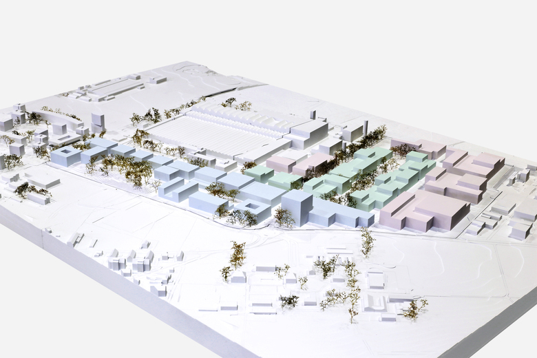 der „Hügelpark“ und die„Parkinsel“. Die Ausrichtung der Bebauung wird von den vorhandenen Hallen und Industriestrukturen im Umfeld aufgenommen. Im Masterplangebiet werden drei Bereiche definiert: Eine campusartige Bebauung leistet im ersten Bereich den massstäblichen Übergang des Siedlungsraums zur Grossmassstäblichkeit der Bereiche 2 und 3 und zur bestehenden Industriezone. Diese Zone ist für die High-Tech-Nutzung und hochwertige Dienstleistungen ausgelegt. Im Bereich 2 liegt der Schwerpunkt der Nutzungen bei der industriellen Produktion, Entwicklung und Dienstleistung. Das Nutzungsangebot im Bereich 3 ist für grossflächigere industrielle Produktion, Robotik, Werkstätten und Dienstleistung, sowie eigenständige Logistik 4.0 und Lagerung vorgesehen.
