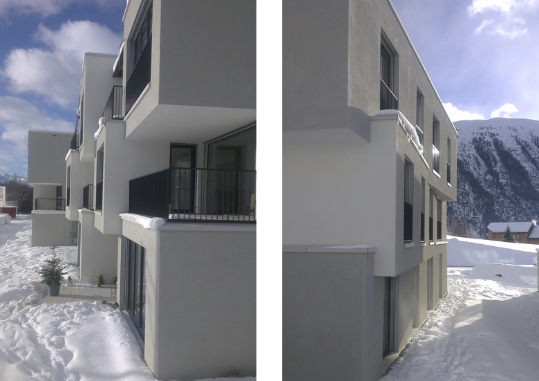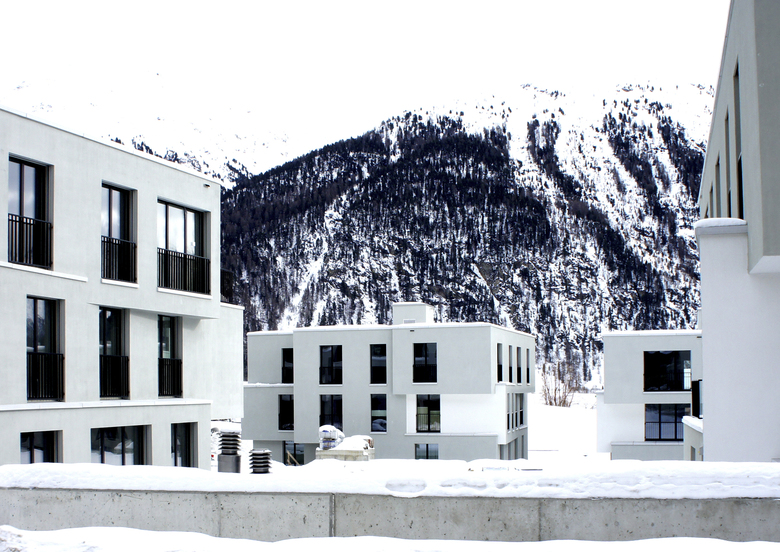 Die Überbauung liegt in nordöstlicher Richtung, ausserhalb des Dorfkerns, auf einem zwischen der Ausfallsstrasse Quadratscha und den Bahngleisen abfallenden Grundstück. Das unmittelbare Umfeld, welches ein äusseres Tor zum Dorf Samedan darstellt, wird durch die heterogenen Umgebung und Nutzungen geprägt. Zudem sind die topografischen Eigenschaften und die schlechte Bodenbeschaffenheit des Ortes für den Entwurf mitbestimmend.