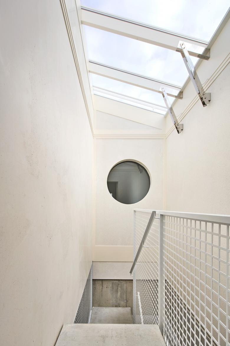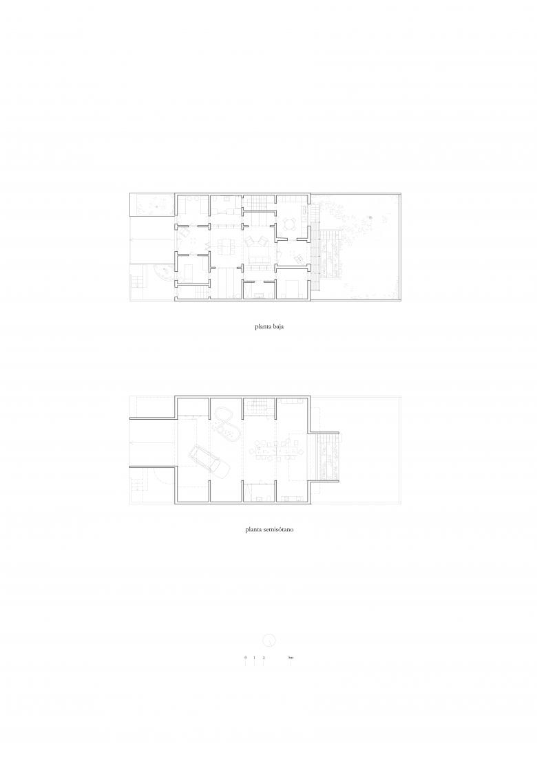 El programa doméstico de esta casa entre medianeras se desarrolla en una única planta de 12 x 15m, situada medio nivel por encima de la rasante del terreno. La terraza de acceso y el jardín median entre la casa y el espacio público.