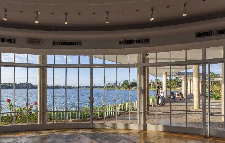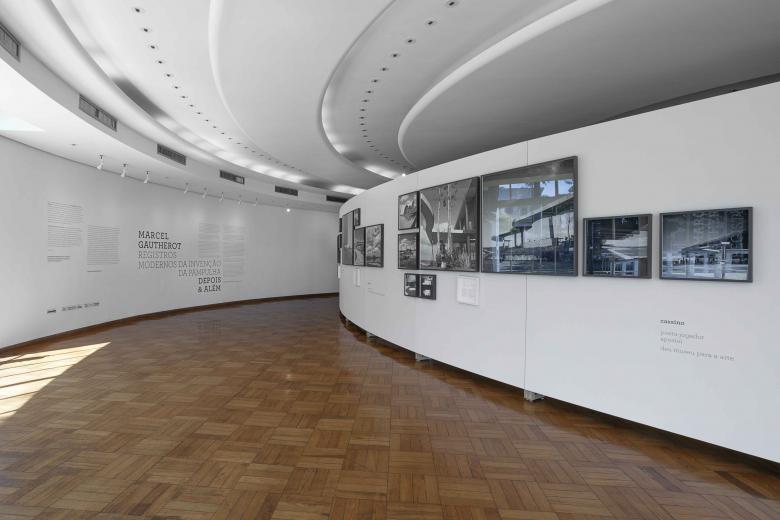 O projeto expográfico da mostra “Marcel Gautherot: Registros modernos da invenção da Pampulha” procura ser uma resposta à arquitetura da Casa do Baile (Oscar Niemeyer, 1943) e foi concebido a partir dessa pré-existência, ou desse espaço arquitetônico moderno.