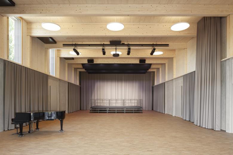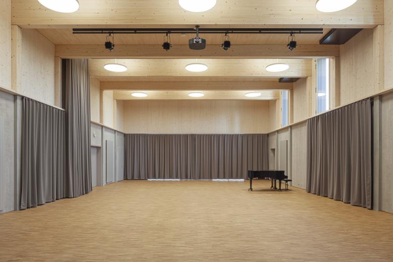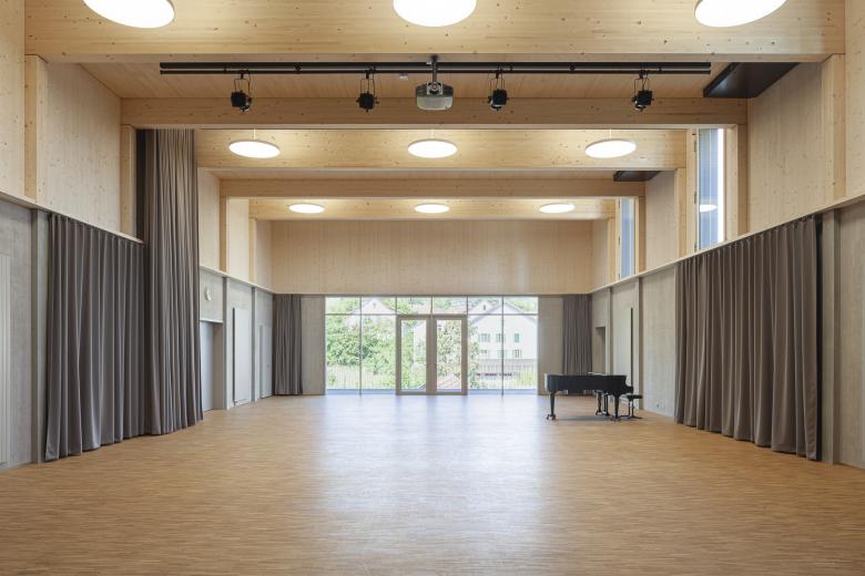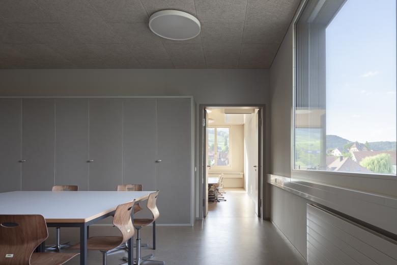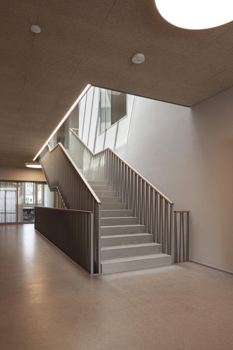Die Flächendefizite der Primarschule werden darin ausgeglichen. Neben 6 Klassen-zimmern mit entsprechenden Gruppenräumen und einem Lehrerzimmer befindet sich im Ersatzneubau auch die neue Aula mit Foyer und Küche. Die im Keller des Realschulhauses eingebaute Holzschnitzelanlage bleibt bestehen.