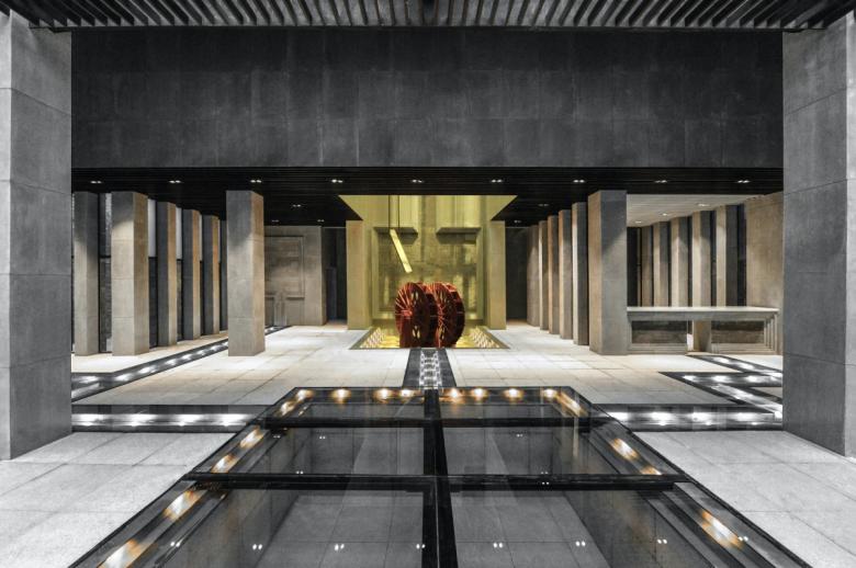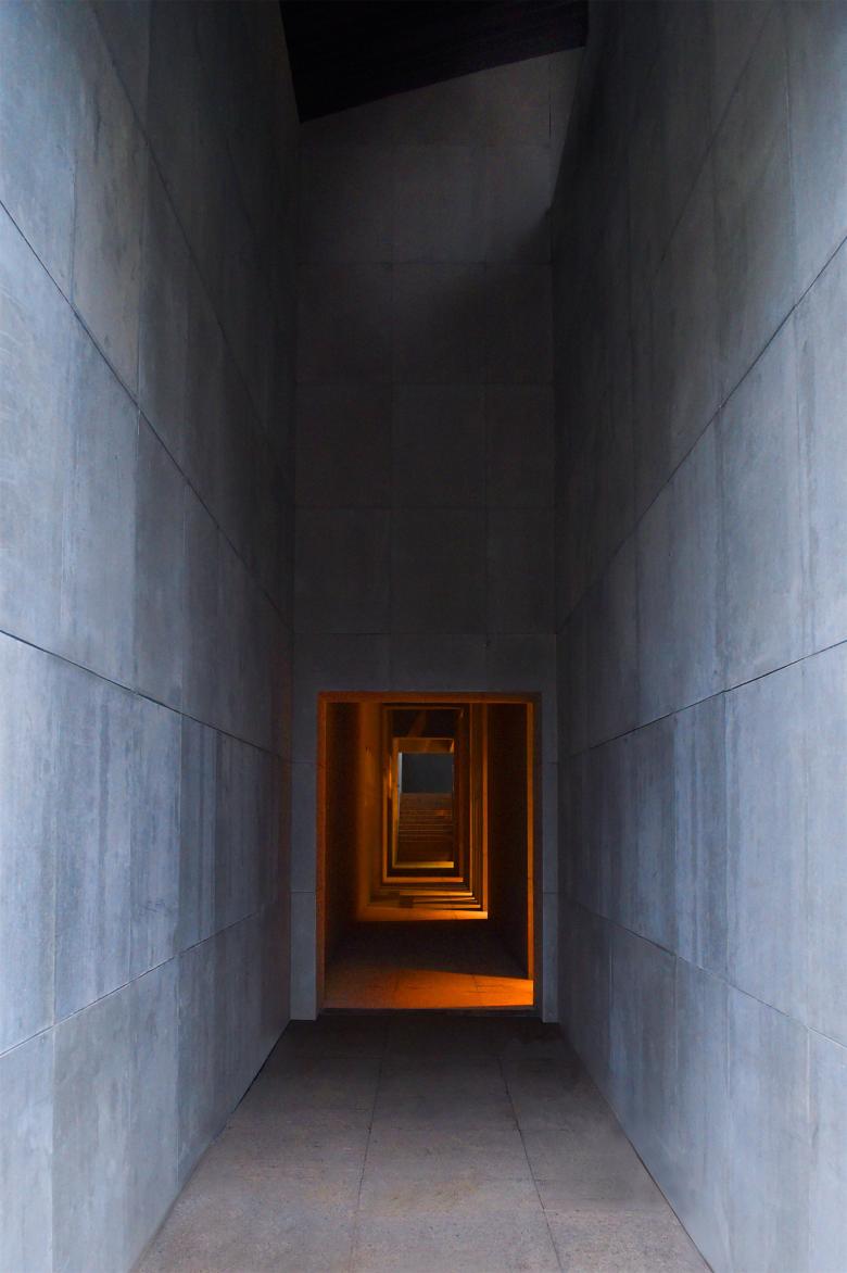 The third band is the largest volume on site and it is categorized as “Tang” (堂), hall. Here are located the visitor center's public functional areas: reception and info point, an exhibition hall and a tea room. Upstairs is the private office area. The interior units follow the parallel flow and have been partitioned according to their functions. Architects deliberately designed the turn near the south end of the first band and the second band in order to combine the three bands into one structural group. Group which still preserves the singular L-shaped units in aim of retaining the relative independence among the parallel bands, while gaining the benefits of uniformity and integrity.