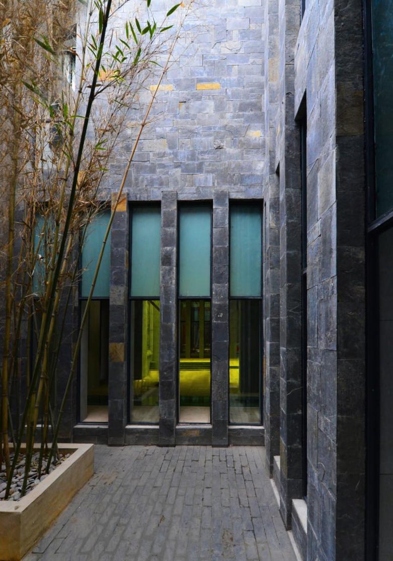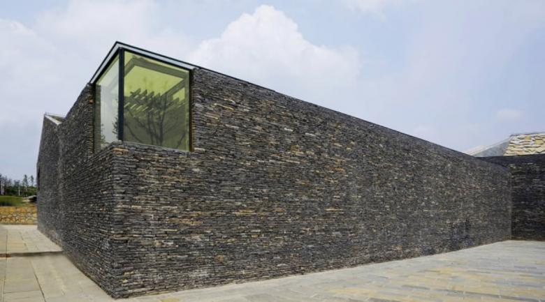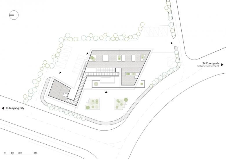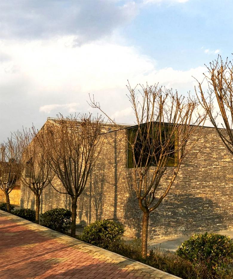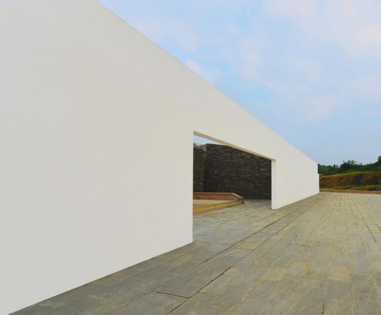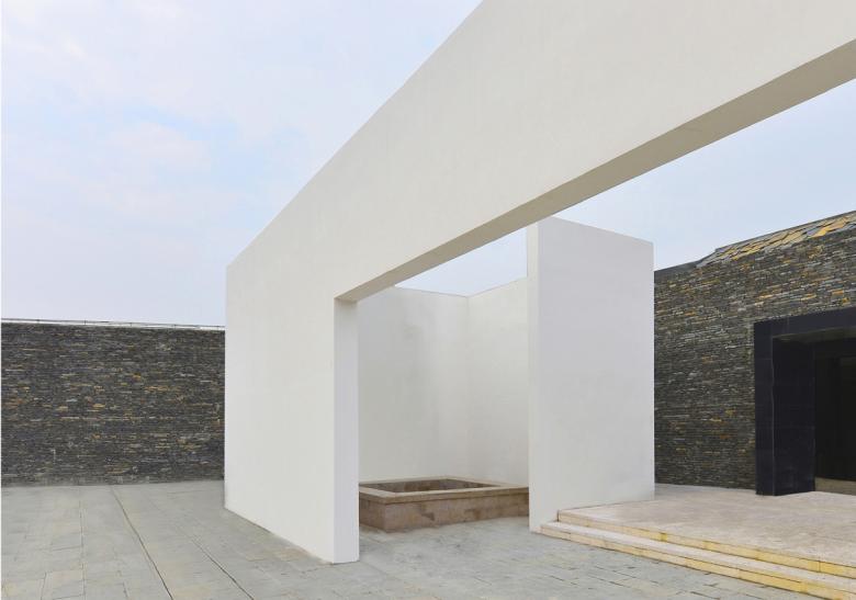 The Architects integrated this characteristic parallel feature in the design of the tourist center. Three parallel units (bands) are arranged following a L-shaped unit, which creates interesting outdoor spaces, in China categorized as “Yuan” (院), courtyard. This first band is characterized by white walls embracing the courtyards, white walls which create a ritualistic impression in contrast with the stone ones.