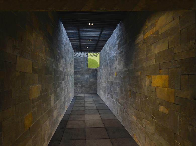Categorized as “Xiang” (巷), lane, the space created by the second band is located on the widest area on site, on its north end. The building at the very end of the long quite secluded corridor hosts the restrooms facilities and has been built according to Chetian Village’s traditional stone masonry techniques.