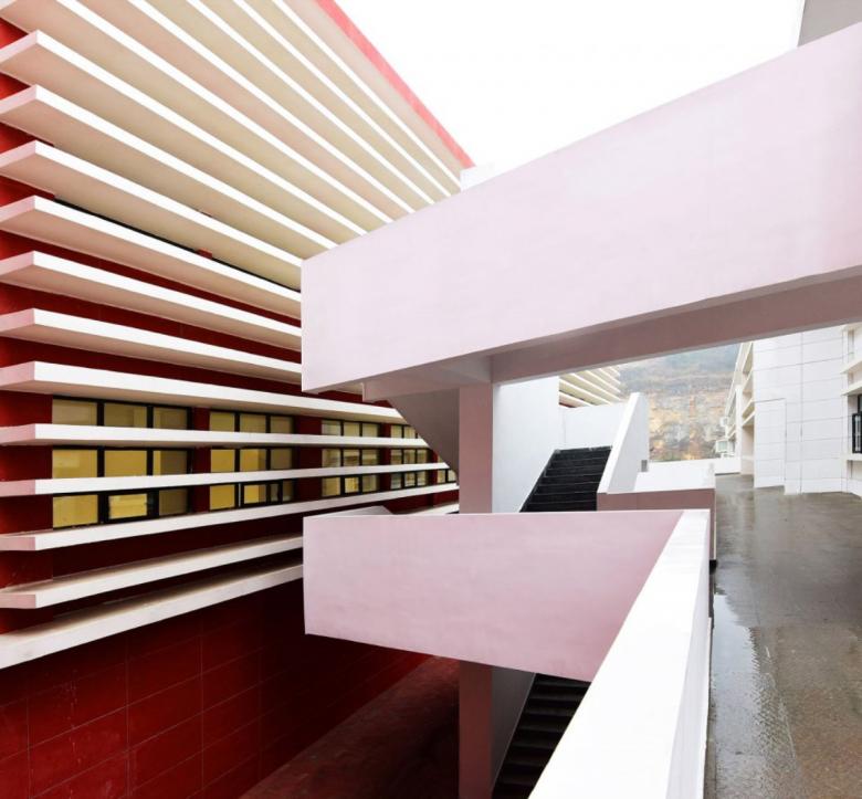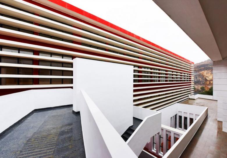 The plan is quite complex, due to the morphological features of the site. The building is made by a succession of parallel bands to combine different programs and it is arranged on many levels.These are connected by outdoor corridors and boardwalk which, due to the mild temperatures, have been equipped with relax areas, reading rooms and sport equipment to encourage socialization.