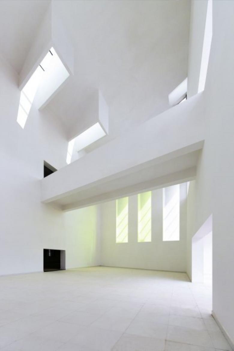 The building is designed following a trapezoidal shape, clearly visible in its sections, which carries on the shape of the mountain. It gradually grows creating an iconic slope, from which only few elements pump out: the training tower on the north corner and the white central hall. The design of this hall is deliberately different from the rest of the building, aiming to create a holy space, the so called 'Honor Hall'. A thick white and deep shadows characterize this high sharp space, used for ceremonies where to reward brave fire mans and to strengthen the spirit of the whole team.
