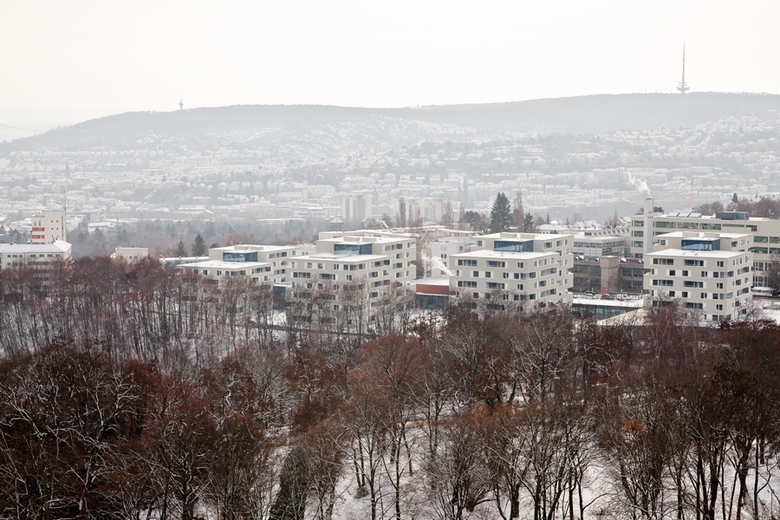 Auf dem Stuttgarter Killesberg, in topografisch und städtebaulich exponierter Lage neben der Weißenhofsiedlung befindet sich das Seniorenwohnstift Augustinum II. In vier Doppeltürmen sind 300 unterschiedlich große Wohneinheiten angeordnet. Die Höhenstaffelung der differenzierten Einzelbaukörper fällt von acht auf fünf Geschosse, und nähert sich im Maßstab der benachbarten Wohnbebauung an. Verbunden werden die Wohntürme über das dem Gelände angepasste, abgetreppte Sockelgeschoss mit Gemeinschaftseinrichtungen. Von der vielbefahrenen Zufahrtstraße im Westen weicht die Anlage zurück, der Haupteingang orientiert sich zur ruhigen Anliegerstraße im Süden. Die großzügigen Freianlagen unterstützen die Durchlässigkeit der Gesamtanlage. Größere Wohnungen verfügen über Loggien, die durch ihre versetzte Anordnung die strengen Kuben beleben.