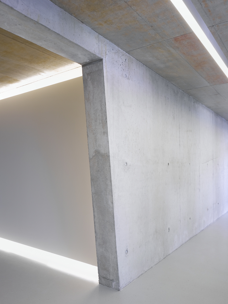 Werkstätten und Internatsbereich aus den 70er-Jahren wurden umgestaltet und durch einen Neubau mit Unterrichtsräumen, Büros und zusätzlichen Internatsräumen erweitert. Das zentrale Treppenhaus verbindet die vier Geschosse des Altbaus mit dem neuen Kubus, der über dem eingeschossigen Werkstattbereich zu schweben scheint. Da der Altbau keine weiteren Lasten aufnehmen konnte, tragen vier Stützen einen plastisch ausgebildeten, sogenannten Tisch mit den neuen Obergeschossen. Eine Glasmosaikfassade bildet die Gebäudehülle, deren unterschiedliche Brauntöne mit den weißen Fensterelementen kontrastieren. Diese übertragen die „hygienisch“ weißen Innenräume auf das äußere Erscheinungsbild. Der Neubauwürfel wird seiner exponierten Lage als zeichenhaftes Bauvolumen gerecht und hebt sich aus dem heterogenen städtebaulichen Umfeld ab.