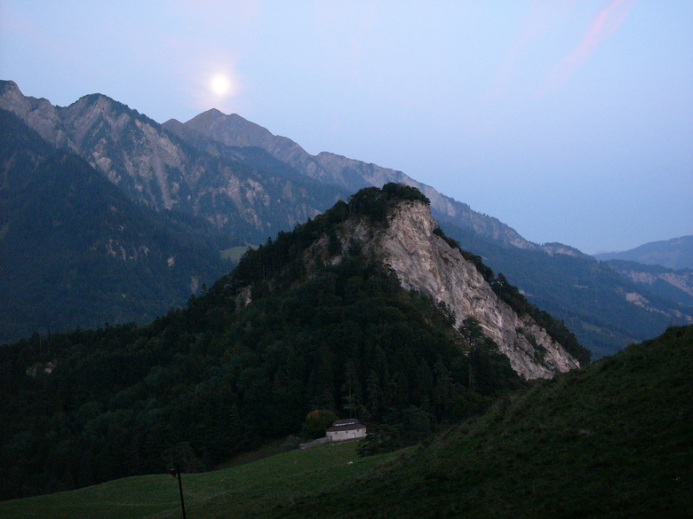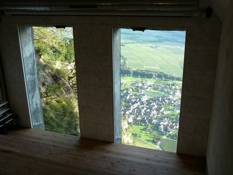 Der Hinweis kam von den ortskundigen Förstern. Auf der Suche nach einem geeigneten Unterstand und einem geräumigen Schullokal waren sie im Fläscher Wald fündig geworden: Auf der felsigen Schulter am Fläscher Berg, hoch über dem Rheintal stand seit Jahren die Bergstation einer ehemaligen Militärseilbahn leer. Auch die gemeinde hielt zur selben Zeit Ausschau nach einer passenden Lokalität für Veranstaltungen im kleinen, aber öffentlichen Rahmen. Der Konsens über einen gemeinsamen Betrieb war schnell gefunden. Und weil der bunkerartige Klotz ausserhalb der Bauzone liegt, war die Beteiligung der Gemeinde sogar eine Grundbedingung für die rechtliche Gültigkeit dieser Umnutzungsidee.