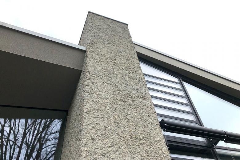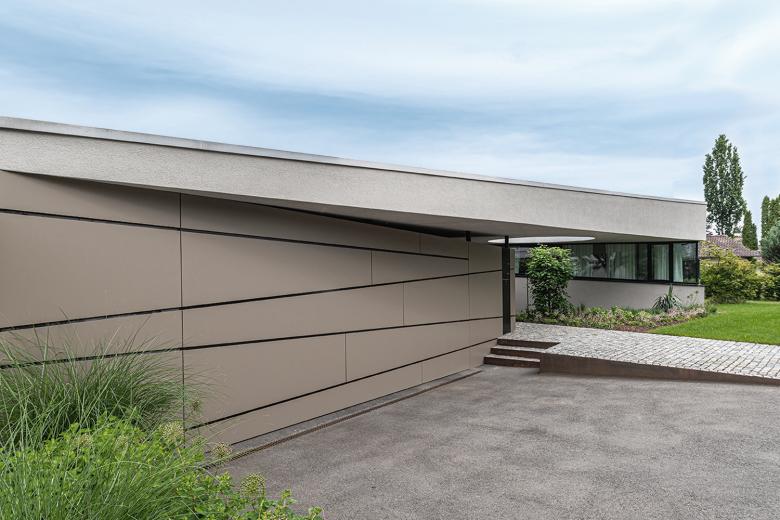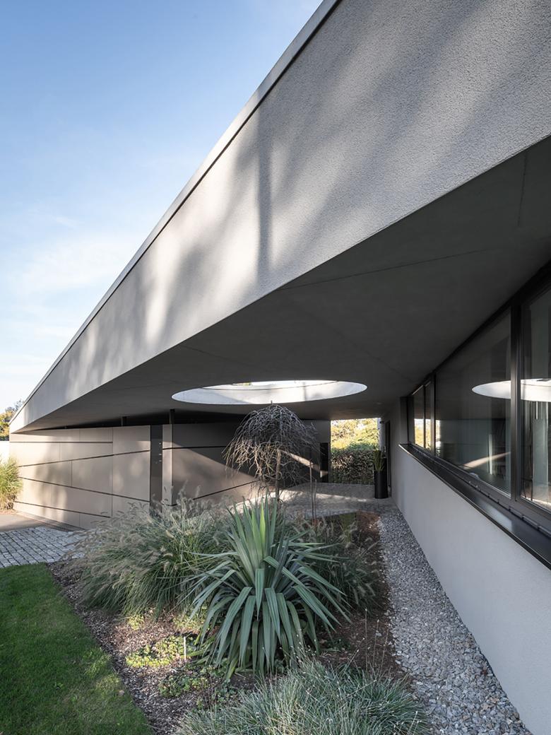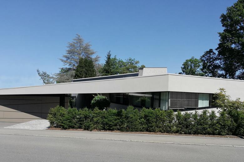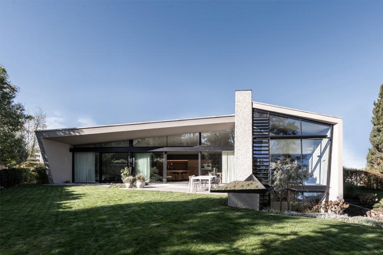 Die Aufgabe bestand darin, das bestehende Wohnhaus aus dem Jahre 1962 innerhalb der baurechtlichen Vorgaben umzubauen, zu erweitern und gestalterisch aufzuwerten: Das vorhandene Satteldach wurde entfernt und mit großzügigen, leicht geneigten Dachflächen neu interpretiert. Aus dem Untergeschoss wurde durch natürlichen Geländemodellierungen ein attraktives Gartengeschoss geschaffen.