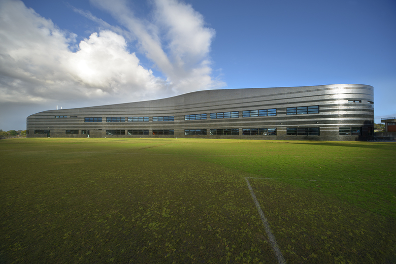 Each wing has its own qualities, different from each other and yet seamlessly connected to the next. In this way the building acts as an embodiment of the journey of education, with less distinction of any prescribed boundaries between disciplines. The colour strategy reinforces the identity of the academic disciplines, universally enhanced by the richness of natural materials such as locally recycled timber, resulting in a variety of spaces and volumes encased within a unifying skin not unlike a collection of villages within a walled citadel with its gardens and ceremonial arches.