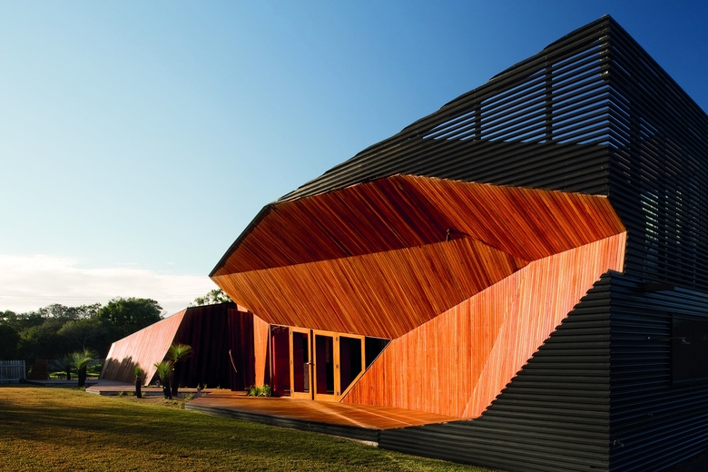 This building enhances the experience of the pedestrian. The building is both recessive and expressive in the public realm. It does not dominate the suburb but is an intriguing expression evocative of both the coastal location and the significant topography of the region.