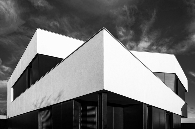 Housingin view the geometry of the plot and programmatic needs arising from the property, resolves to a triangle that almost clogs the buildable area and replicates the shape of the edge of the plot, appropriating by extension and projection of the total plot. On this, a broken floor contains the evening program.