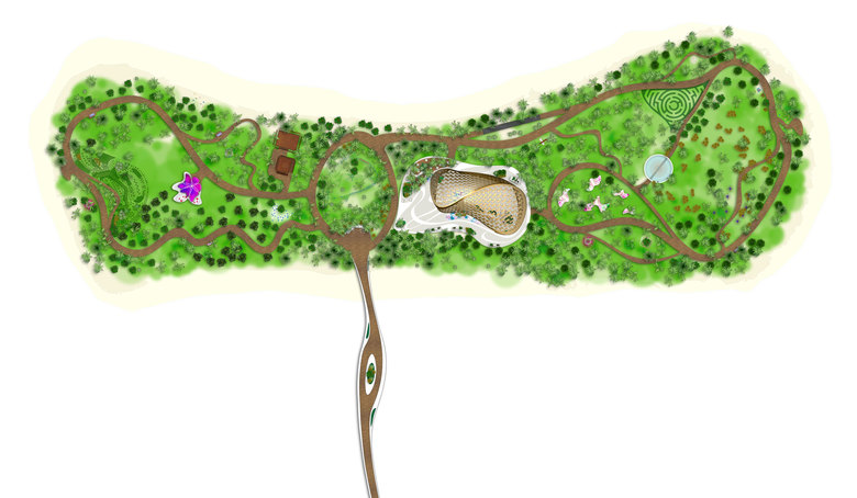 Noor Island Park: eine brachliegende Insel vor der Küste der Wüstenmetropole Sharjah, verwandelt in einen transmedial inszenierten Landschaftspark als neuen Typus urbanen Raums. Der Butterfly Pavilion mit seinem weithin sichtbaren, goldglänzenden Schattendach bildet das architektonisches Kernstück. Die beeindruckende, organisch geformte Stahlkonstruktion des zentral gelegenen Schmetterlingshauses ist über und über mit sternförmigen Metallblüten besetzt. Durch das einfallende Sonnenlicht werfen sie ornamentale Muster auf den innenliegenden Glaspavillon. Neben einer tropischen Regenwaldlandschaft mit rund 500 exotischen Faltern beinhaltet das expressiv gestaltete Bauwerk einen Souvenirshop und ein atmosphärisches Café.