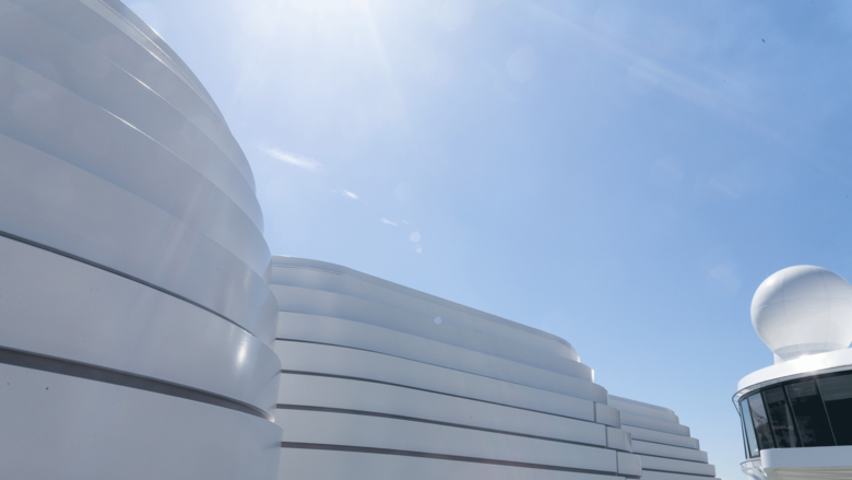 Eine sehr offen gestaltete, zu den Seiten hin weit auslaufende Glasfassade, der so genannte „Diamant“, definiert die charakteristische Heckansicht des Schiffes und bietet von innen einen beeindruckenden Panoramablick.