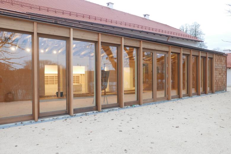 Nach Abbruch der Zu- und Anbauten wurde zum See hin ein hölzerner Ausstellungraum ergänzt., der in Verbindung mit dem neuen Klosterladen das kulturelle Angebot von Kloster Seeon abrundet.