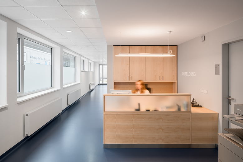Die Detailgestaltung der Fensterbänder wird den Anforderungen an verschiedene Sturz- und Brüstungshöhen gerecht für Arbeits- und Nebenräume.