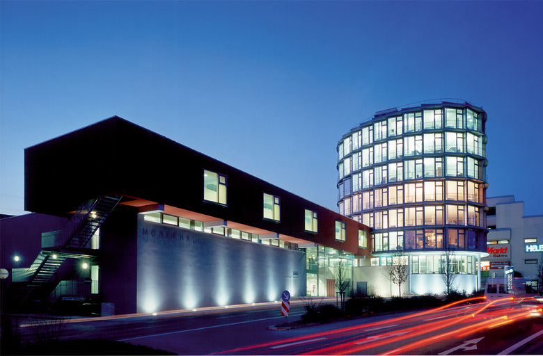 Der Möriketurm mit Schule und Stadtteilhalle liegt am Rand der historischen Innenstadt Nürtingens. Die Wege- und Blickbeziehungen am Übergang der Innenstadt zum Bahnkörper und zur Vorstadt erlauben die Komposition einer Mehrzweckhalle, eines darüber zu schweben scheinenden Schulgebäudes und eines hohen, zylinderförmigen Verwaltungsbaus für „Start-Up’s“. Materialität und Farbe akzentuieren die Schichtung zu einem spannungsvollen Ensemble.