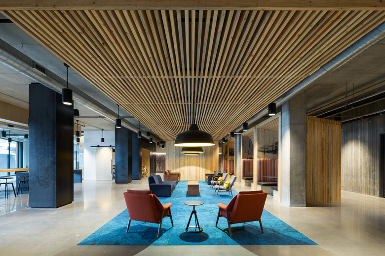The building’s aesthetic success can also be attributed to the mass timber construction. Candice Nichol, MGA Associate and T3 Project Lead, says, "the texture of the exposed NLT is quite beautiful. The small imperfections in the lumber and slight variation in colour of the mountain pine beetle wood only add to the warmth and character of the new space." Extensive exterior glazing at every level as well as views into the ground level social workspace with wood furniture, booths, and a feature stair, allow the public to experience the building.