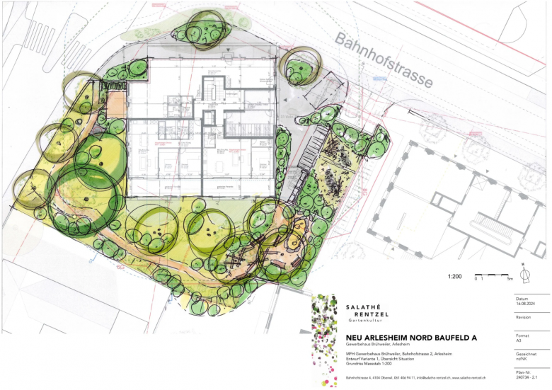 Im Rahmen des Quartierplans "Neu Arlesheim Nord" entsteht an der Bahnhofsstrasse in Arlesheim ein Mehrfamilienhaus mit Büroräumlichkeiten. Der voraussichtliche Baustart ist im 2025, die Fertigstellung auf 2026 projektiert.